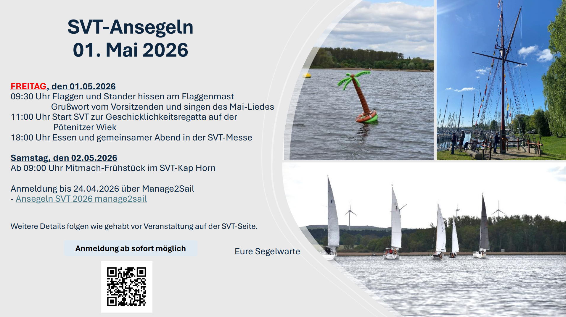Anmeldung bis 24.04.2026 über Manage2Sail – Ansegeln SVT 2026 manage2sail