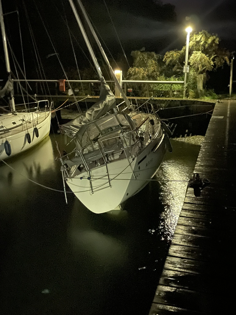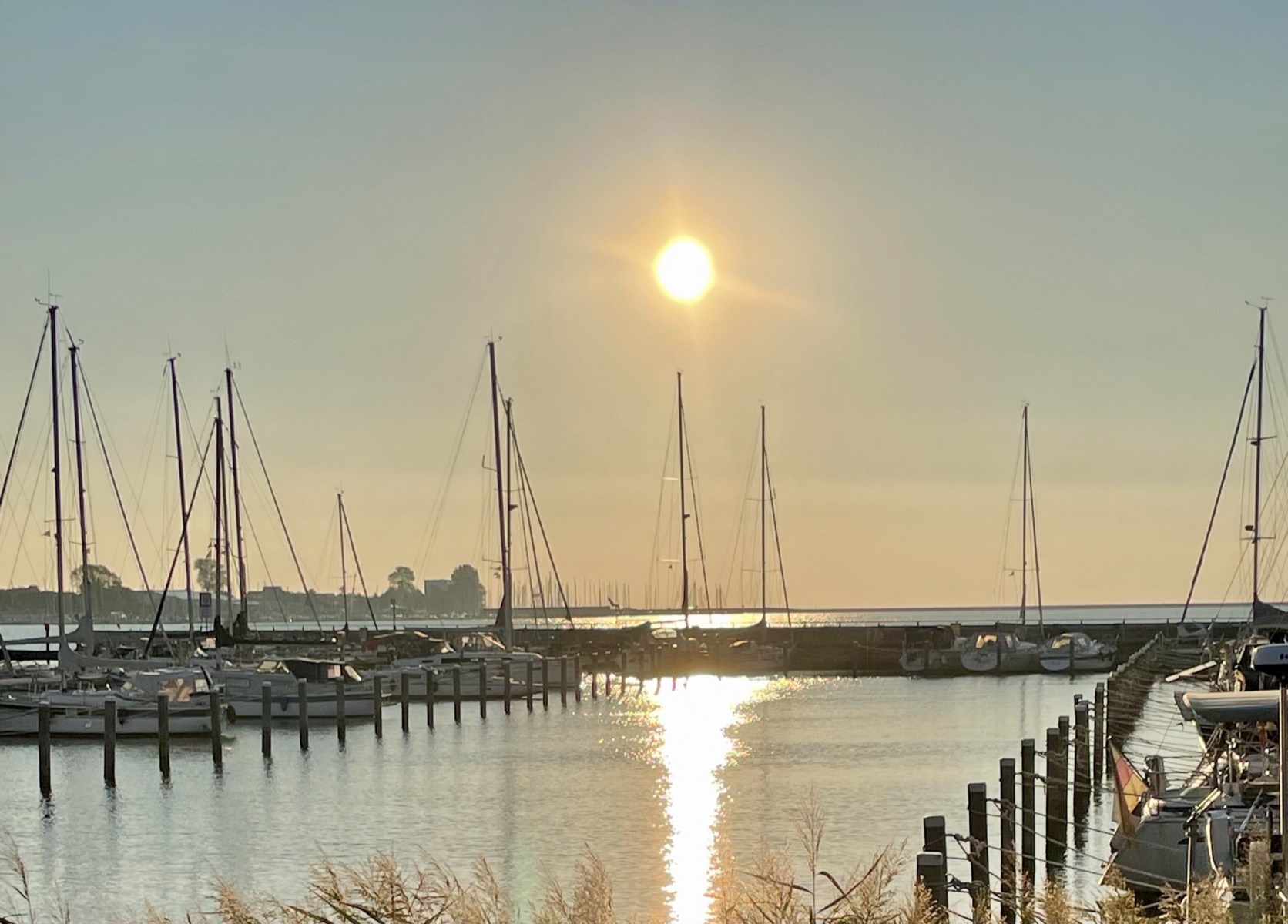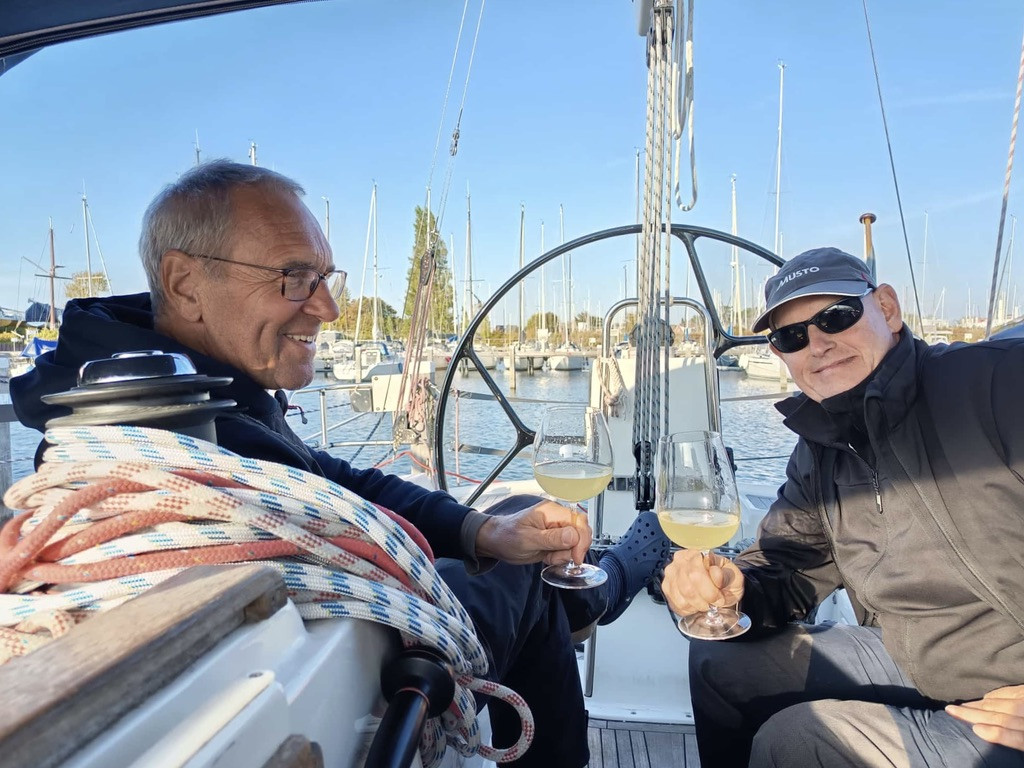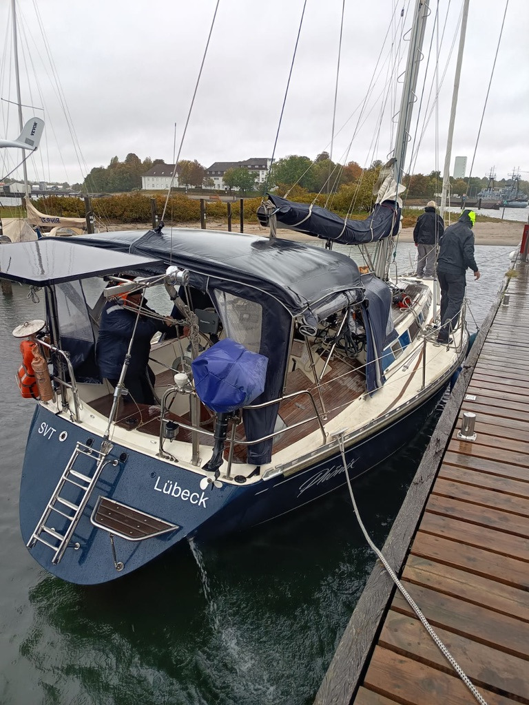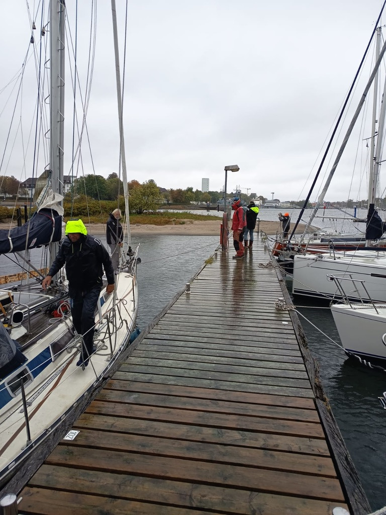 Der Wind frischte auf, der Hafen in Neustadt konnte noch vor Einsetzen des Starkwindes aus West erreicht werden. Dort war Segelkameradschaft gefragt. Das Wasser wurde aus der Lübecker Bucht gepresst, unsere Boote liefen Gefahr auf Grund zu sitzen. Also wurden Tampen gespannt und gemeinsam Boote bei Starkwind verholt.