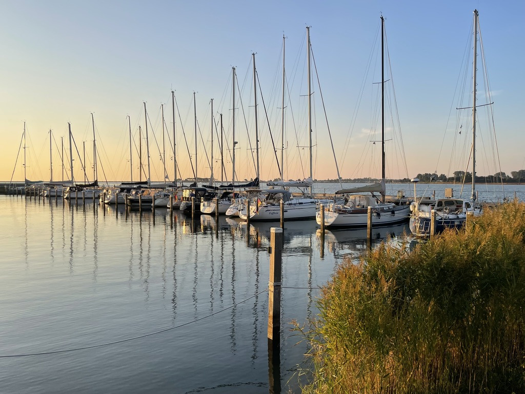 Erster Zielhafen war Kirchdorf auf Poel, alle hockten nett zusammen, es wurde spät auf den Booten. Geruhsamer ging es dann im nächsten Hafen Großenbrode zu. Der Schlaf wurde aufgeholt.